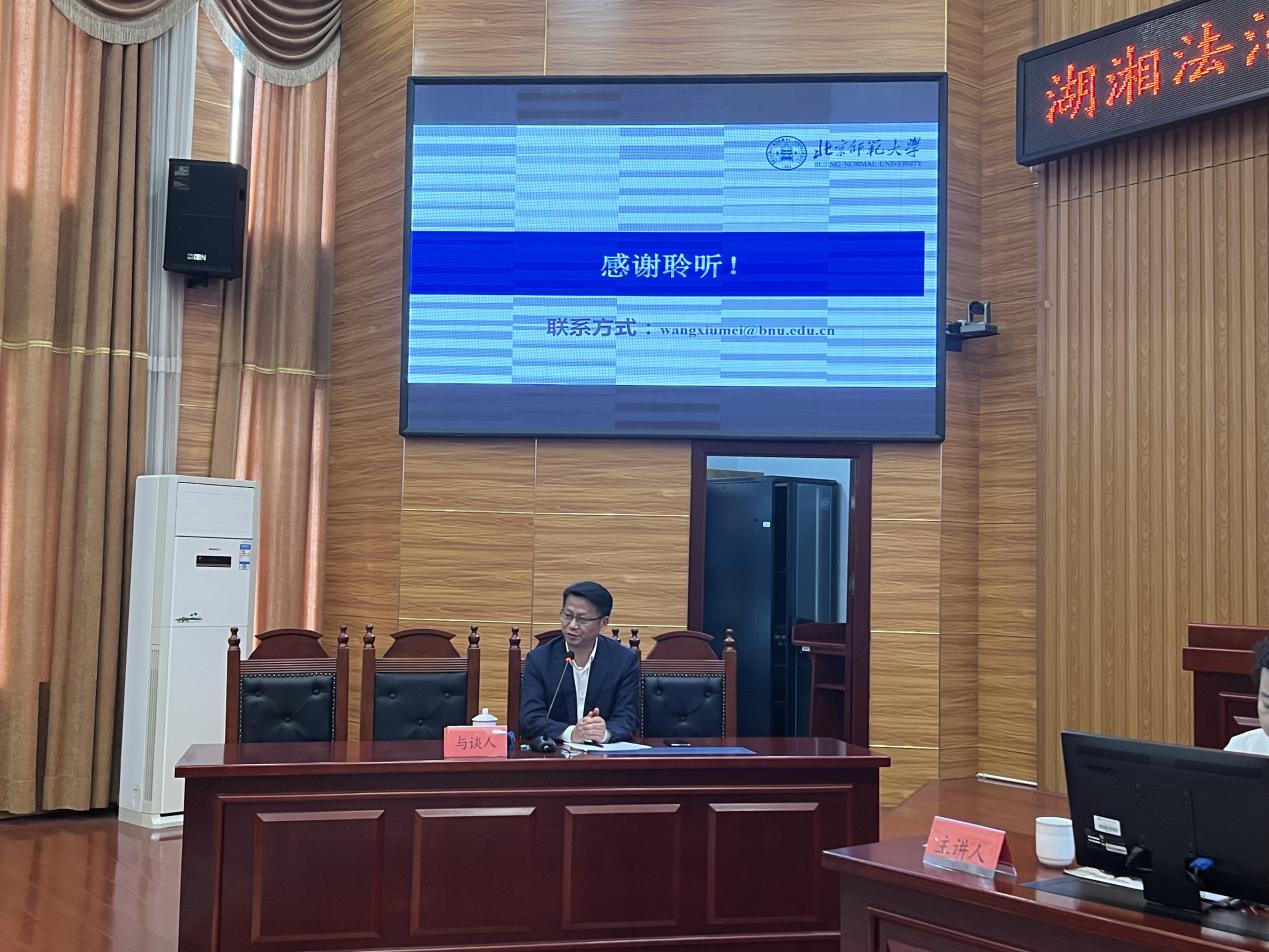 邱帅萍院长对王秀梅教授的到来表示热烈欢迎以及衷心感谢!他说道:“今天的这次讲座是湖湘法治论坛第110讲,同时也是清廉大讲坛第4讲。在这个秋高气爽、硕果累累的金秋十月,我们非常荣幸的请到了我母校北京师范大学刑事法律科学研究院副院长、法学院二级教授王秀梅教授莅临指导,让我们大家以热烈的掌声欢迎王教授。我相信我们王教授今天一定会毫无保留的为大家倾情讲述,今天的讲座也一定会让大家收获满满!”