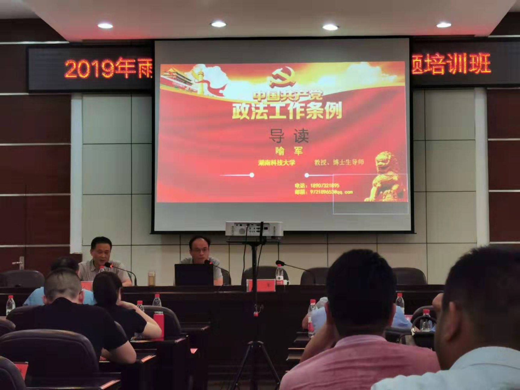喻军教授应雨湖区政法委之邀,前往雨湖区政法委2019年雨湖区政法系统领导干部专题培训班进行授课。