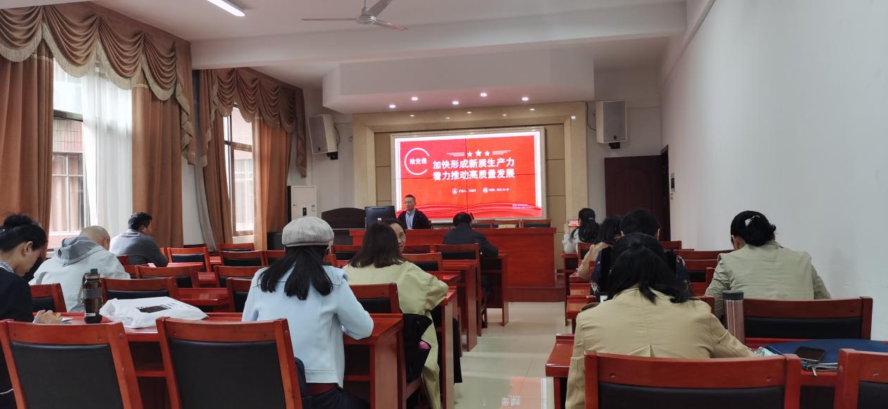 党员、教师政治学习,学院于4月9日下午在立言楼A425开展了会前“微党课”第十讲活动。此次活动由法律服务中心主任马驰升副教授主讲,题目是“加快形成新质生产力,着力推进高质量发展”。马教授以新质生产力是什么(what)、新质生产力与以往生产力的区别及其作用(why)、新质生产力如何发展(how)三段论的逻辑结构来简要的地阐述了他对新质生产力的理解与领悟。他首先讲述了新质生产力的概念,并认为新质生产力这一概念的提出是对马克思主义生产力理论的继承与发展,标志着我们党关于生产力的认识实现了又一次飞跃;其次谈到了新质生产力与传统生产力所存在的本质差别,这本质差别在于“新质生产力以科技创新为根本保障”,并明确新质生产力是高质量发展的重要引擎,强调发展结构优化的重要性;最后回到如何发展新质生产力这一焦点上,他认为可以通过以下三大举措来发展新质生产力:统筹科技、教育、人才三大战略,为新质生产力的形成提供强力科技支撑。进一步深化制度改革、优化营商环境,为新质生产力的形成提供适宜的制度保障。稳步推进供给侧结构性改革和需求侧管理,为新质生产力的成型、成势扫清结构性障碍。