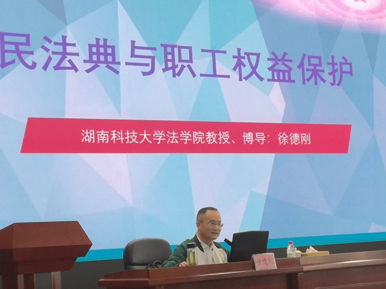徐德刚教授始终不忘自身职责,致力于为各级工会组织宣讲法律知识,克服疫情带来的不利影响,先后为郴州快递小哥送法,为省总工会办公室主任培训班讲法,受到广大听众的一致好评。5月9日、16日,徐教授又不辞辛劳,应湖南省总工会干部学校邀请,先后为长庆油田公司两期工会主席培训班主讲了题为《民法典与职工权益保护》的法治课,重点讲授了职工权益保护的相关法律知识,为培训班工会领导送上了一顿法律大餐。